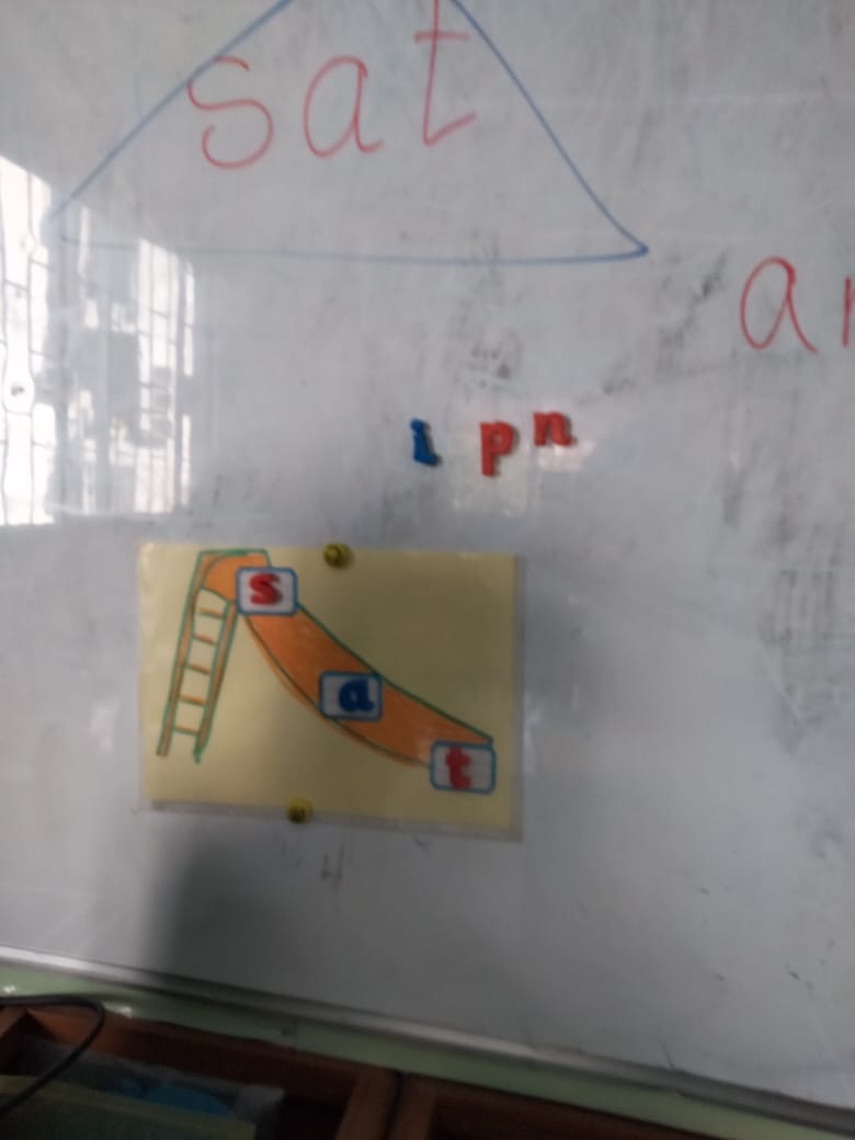 KG3 are sliding with the sounds (blending practice CVC words)