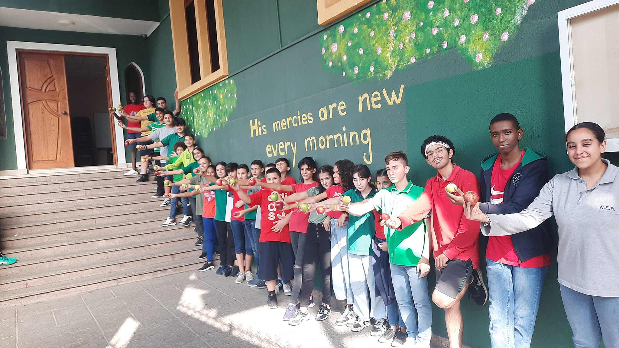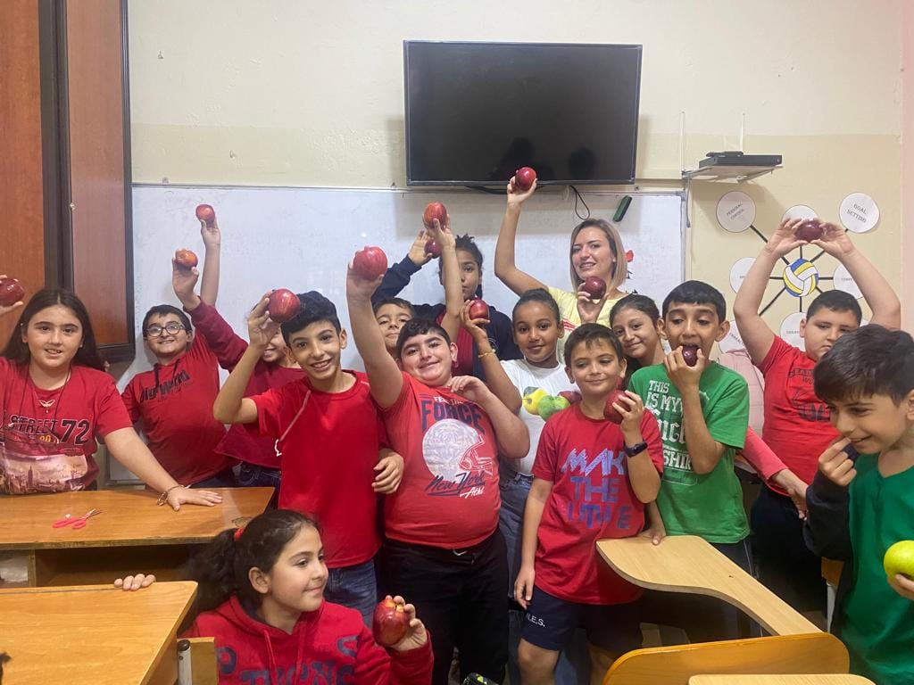 Supporting the Lebanese farmers: the whole school is eating apples! Way to go middle school students