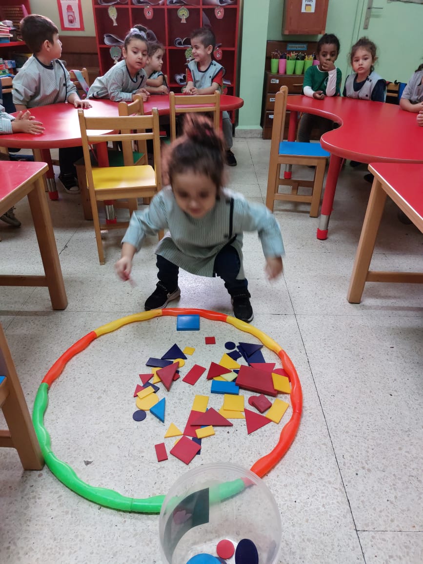 Kg1 pupils picked up only *circles* and put them *inside* the hoop.