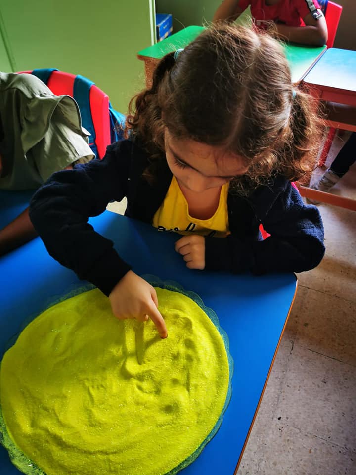 A travers le sel, les enfants ont ėcrit la lettre A a et B b en français! Bravo kg2!
