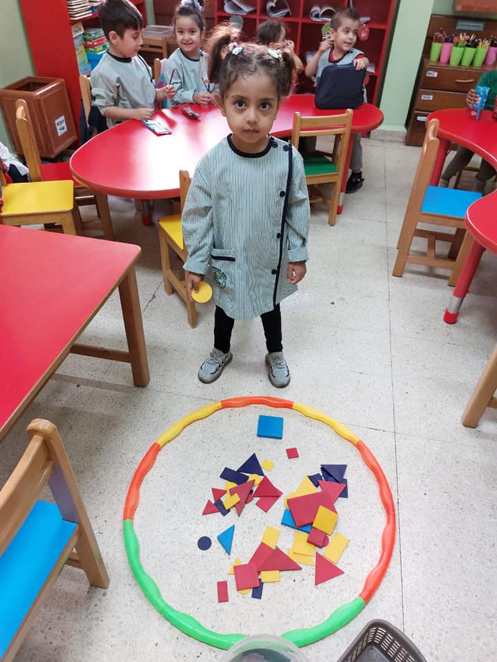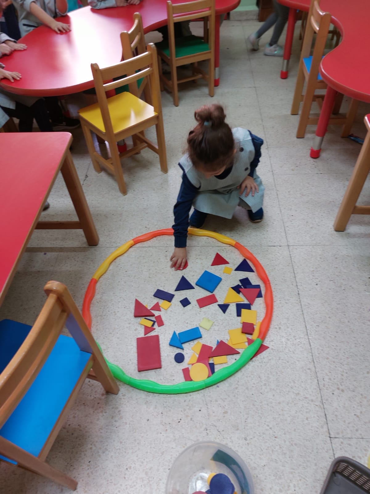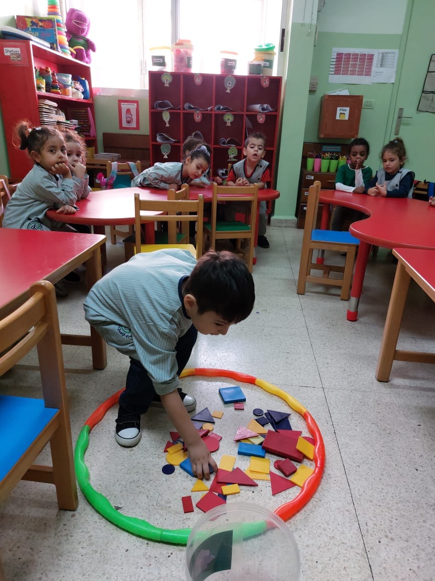 Kg1 pupils picked up only *circles* and put them *inside* the hoop.