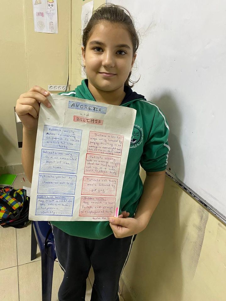 Grade 4 students working on projects about eating disorder anorexia and bulimia within the Protect Education class